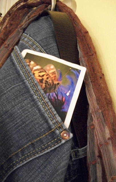 The first song I heard when turning on the radio at work was Photograph by Ed Sheeran. The lyric, “Keep me inside the pocket of your ripped jeans” was my inspiration here.