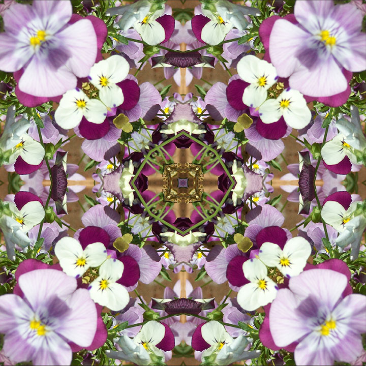 Below is the original photo used to create this image. I found this container of pansies on a lunchtime walk around downtown Richmond, VA. No special lighting or retouching, just a snap from my Kodak Share digital camera. And it’s even a little blurry…