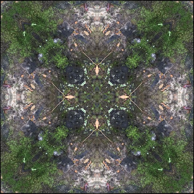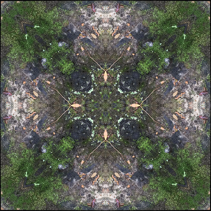 Below is the original photo used to create this image. It’s a lichen and moss covered tree trunk and exposed roots from my backyard. Taken on an overcast day with no special lighting or retouching, just a snap from my smart phone.
