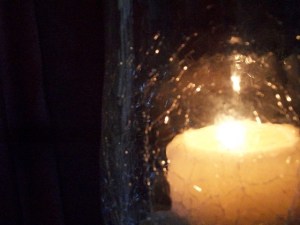 Below is the original photo used to create this image. It’s a candle in a cracked-glass hurricane. This was taken in the spring of 2016 for a Photography 101 challenge called “Warmth.” No special lighting or retouching, just a snap from my Kodak Share digital camera.