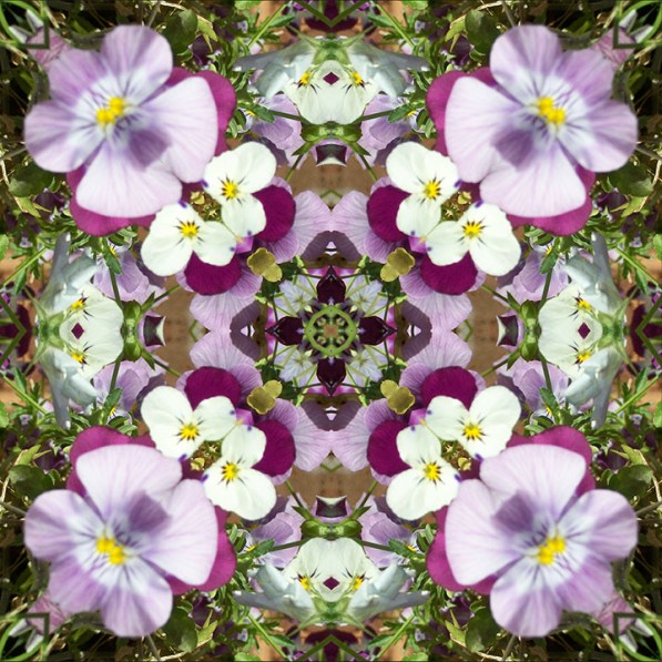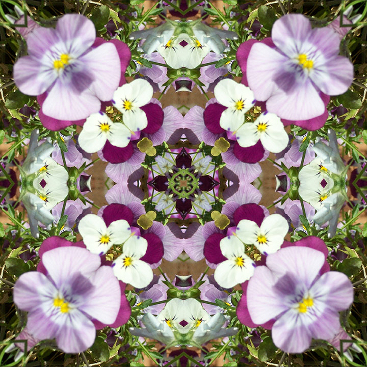 Below is the original photo used to create this image. I found this container of pansies on a lunchtime walk around downtown Richmond, VA. No special lighting or retouching, just a snap from my Kodak Share digital camera. And it’s even a little blurry…