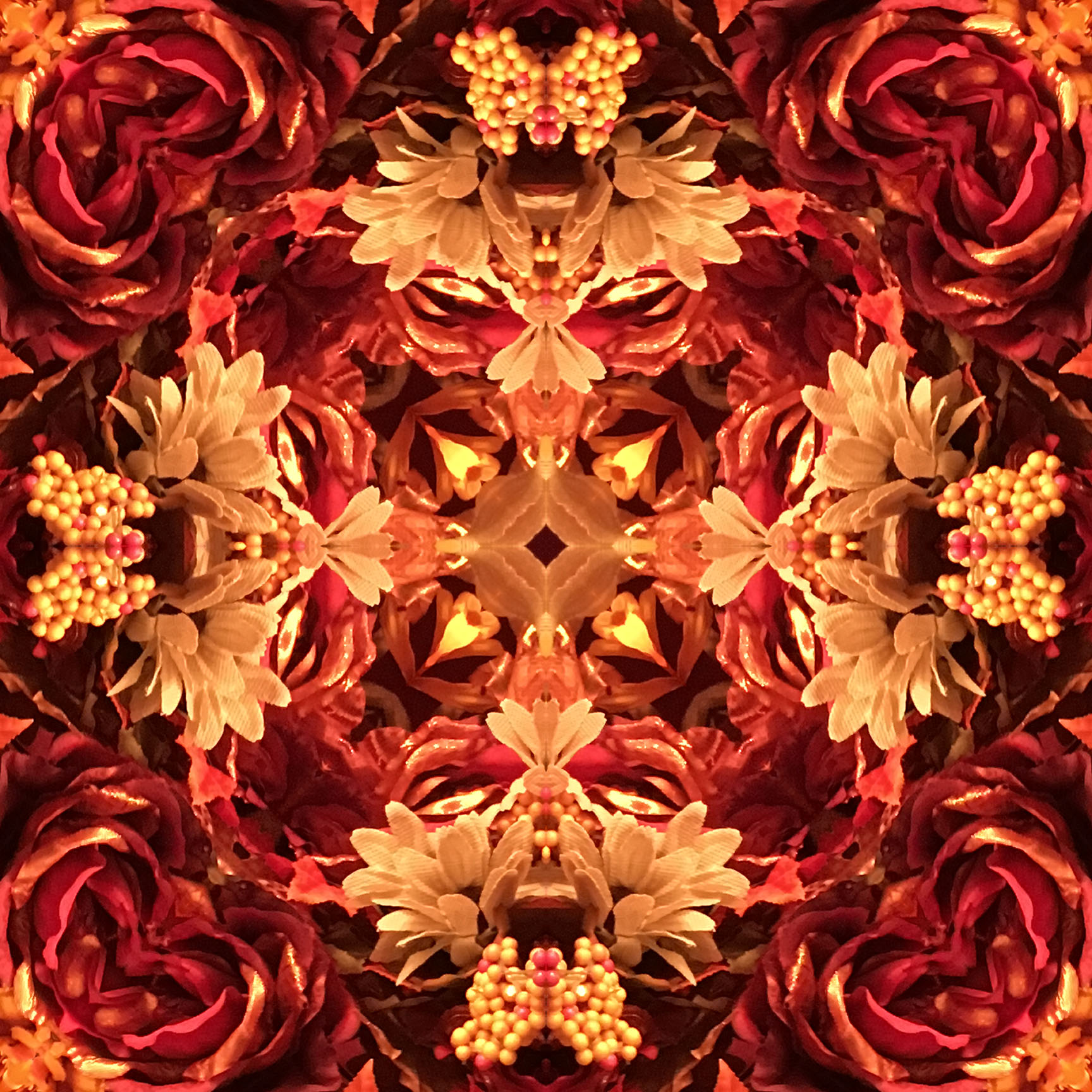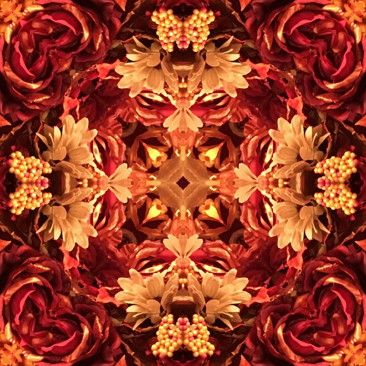 Below is the original photo used to create this image. It’s a bouquet of silk flowers on my dining room table using the curtain as a drape. No special lighting or retouching, just a snap from my smart phone.