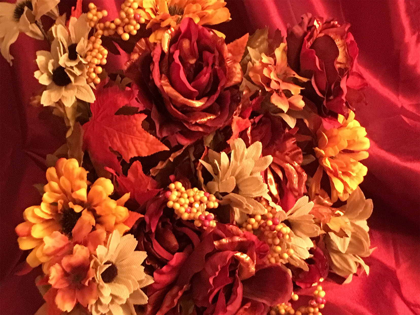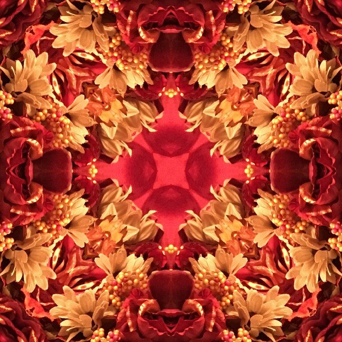 Below is the original photo used to create this image. It’s a bouquet of silk flowers on my dining room table using the curtain as a drape. No special lighting or retouching, just a snap from my smart phone.