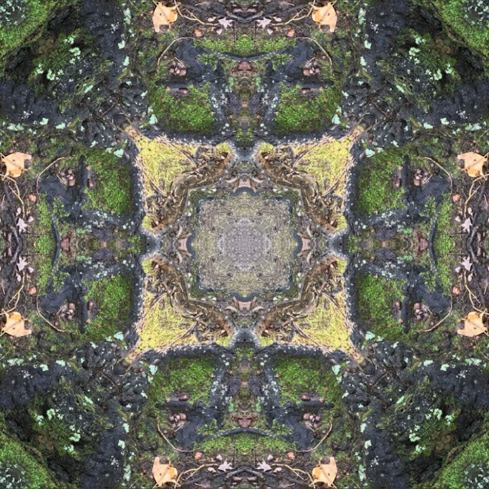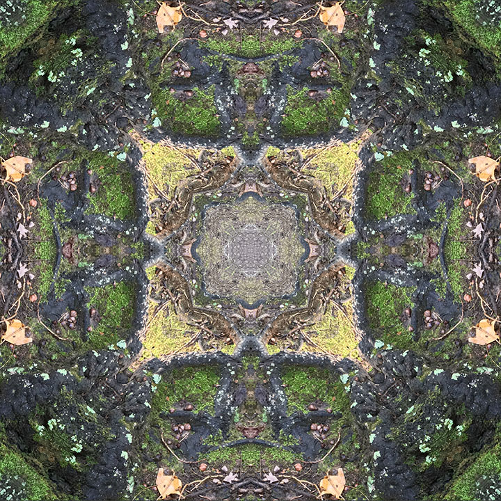 Below is the original photo used to create this image. It’s a lichen and moss covered tree trunk and exposed roots from my backyard. Taken on an overcast day with no special lighting or retouching, just a snap from my smart phone.