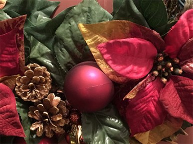 Below is the original photo used to create this image. It’s a close-up of the holiday wreath on my front door. No special lighting or effects, just a snap from my smartphone.