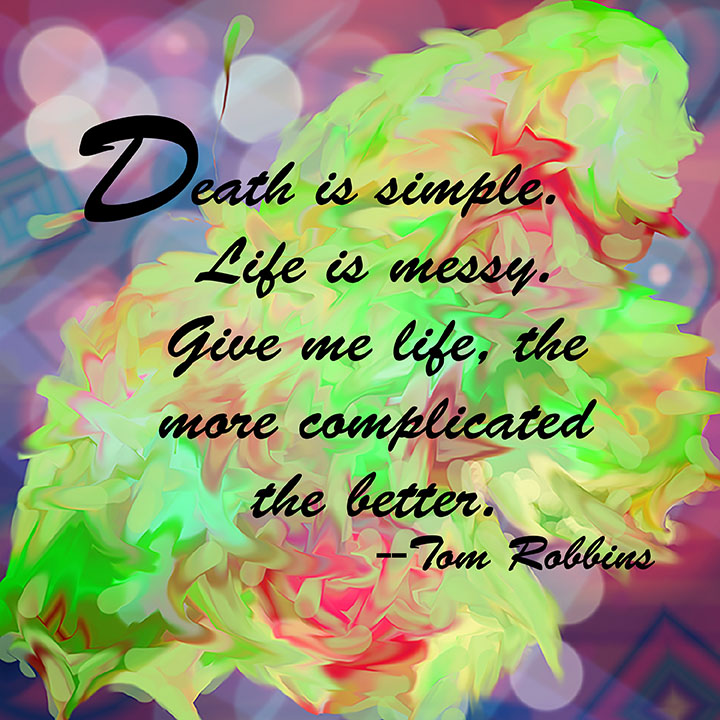 Death is simple. Life is messy. Give me life, the more complicated the better.