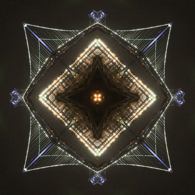 Below is the original photo used to create this image. It’s of the Benjamin Franklin Bridge in Philadelphia, Pennsylvania, taken from my hotel window in December, 2017 while visiting family before Christmas. No special lighting or effects, just a snap from my smart phone.