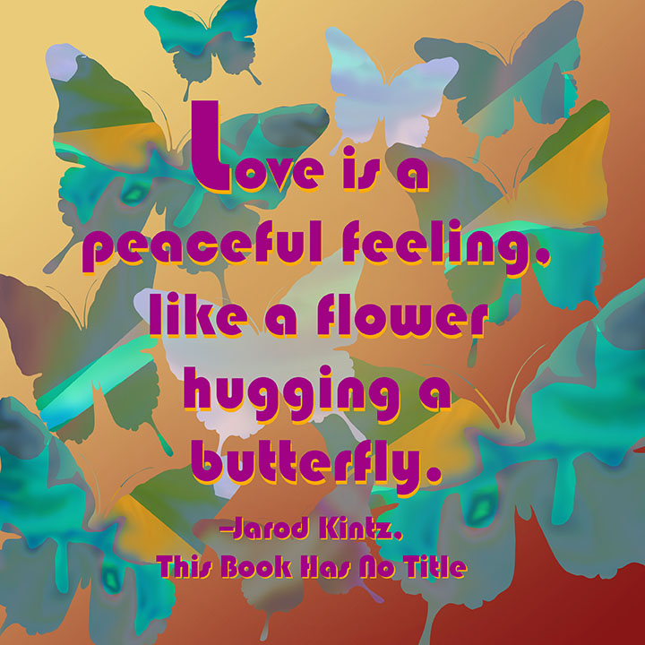 Love is a peaceful feeling, like a flower hugging a butterfly.