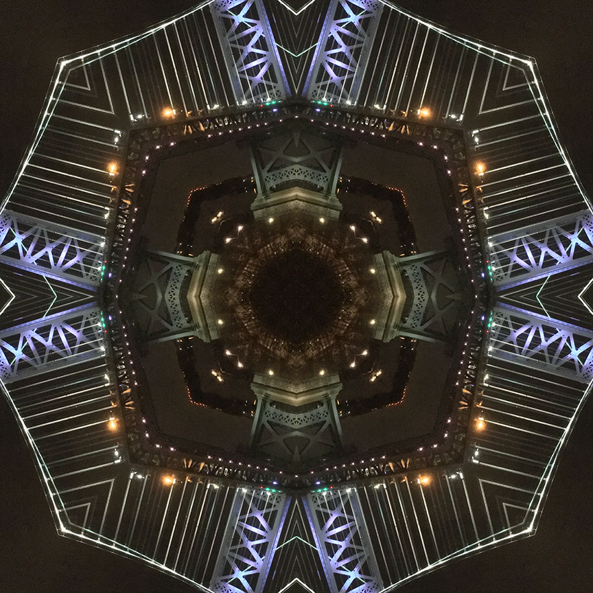 Below is the original photo used to create this image. It’s of the Benjamin Franklin Bridge in Philadelphia, Pennsylvania, taken from my hotel window in December, 2017 while visiting family before Christmas. No special lighting or effects, just a snap from my smart phone.