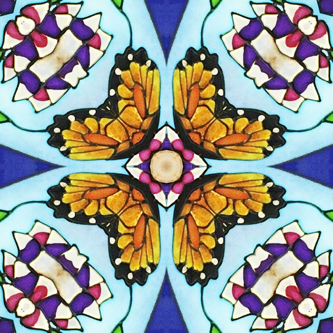 Below is the original photo used to create this image. It’s a glass sun-catcher that hangs in my office window. Taken on an bright morning with no special lighting or retouching, just a snap from my smart phone.