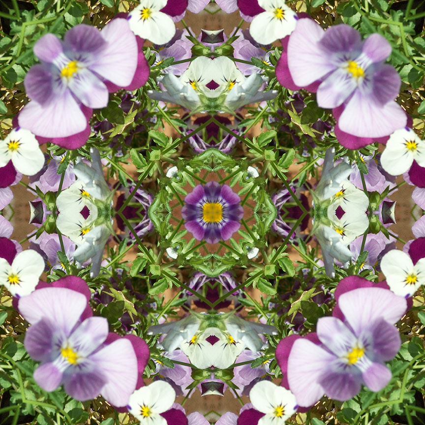 Below is the original photo used to create this image. I found this container of pansies on a lunchtime walk around downtown Richmond, VA. No special lighting or retouching, just a snap from my Kodak Share digital camera. And it’s even a little blurry…