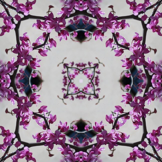 Below is the original photo used to create this image. I found this blooming redbud on a lunchtime walk around the Richmond capital buildings. No special lighting or retouching, just a snap from my Kodak Share digital camera. I like how the background came out a little blurry…
