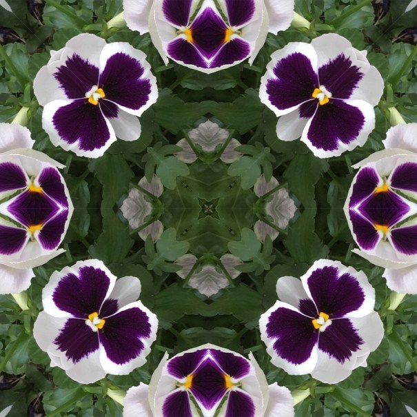 Below is the original photo used to create this image. I found this container of pansies on a lunchtime walk around downtown Richmond, VA. No special lighting or retouching, just a snap from my smart phone.