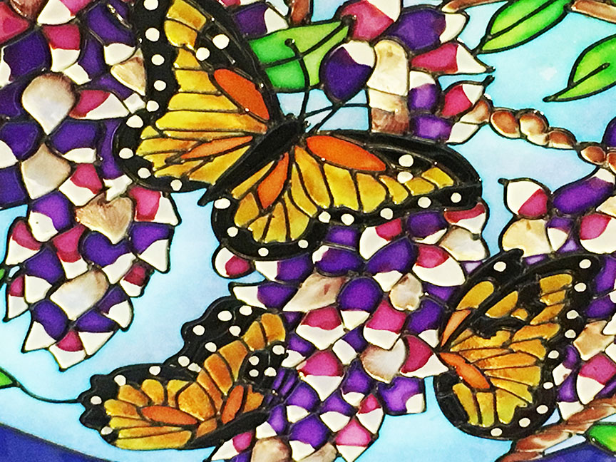 Below is the original photo used to create this image. It’s a glass sun-catcher that hangs in my office window. Taken on a bright morning with no special lighting or retouching, just a snap from my smart phone.