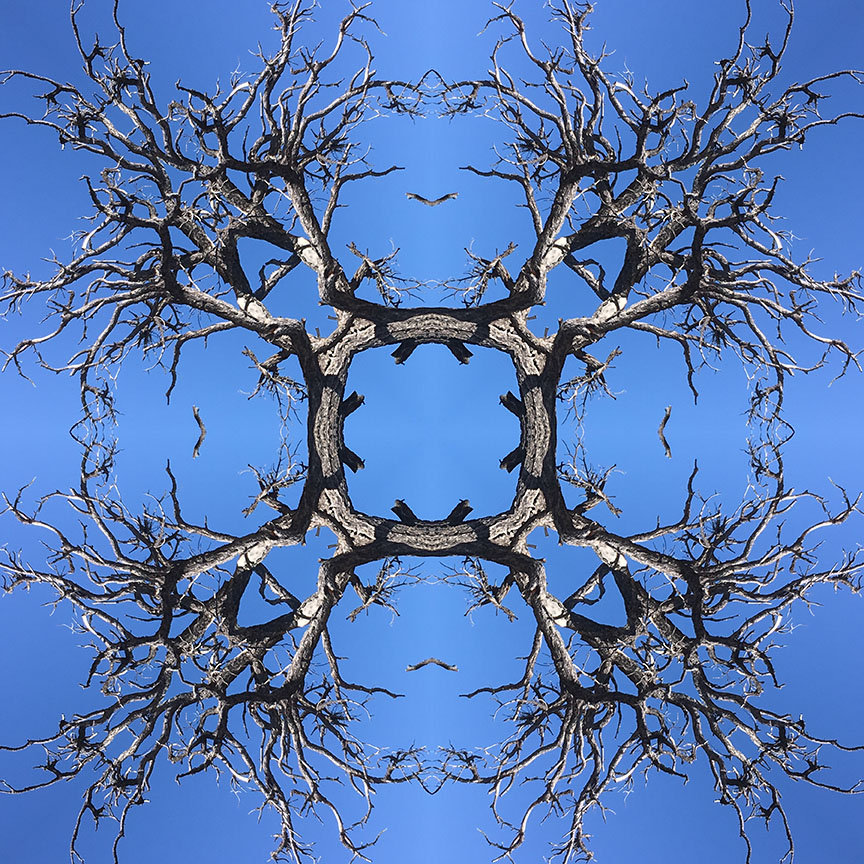 Below is the original photo used to create this image. This was taken at the Grand Canyon during a morning hike along the southern rim on the Greenway Trail. I’m still fascinated by the stark beauty of this dead tree, juxtaposed against the vibrant green of the pine and the watercolor sky. No special lighting or retouching, just a snap from my smart phone.