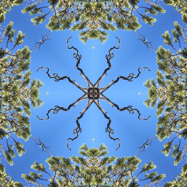 Below is the original photo used to create this image. This was taken at the Grand Canyon during a morning hike along the southern rim on the Greenway Trail. I’m still fascinated by the stark beauty of this dead tree, juxtaposed against the vibrant green of the pine and the watercolor sky. No special lighting or retouching, just a snap from my smart phone.