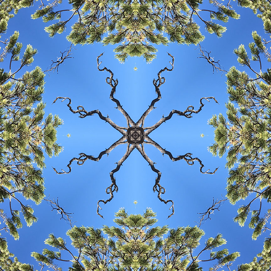 Below is the original photo used to create this image. This was taken at the Grand Canyon during a morning hike along the southern rim on the Greenway Trail. I’m still fascinated by the stark beauty of this dead tree, juxtaposed against the vibrant green of the pine and the watercolor sky. No special lighting or retouching, just a snap from my smart phone.