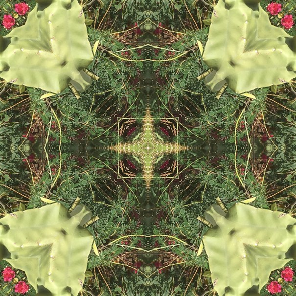 Below is the original photo used to create this image. This gathering of saguaro and funky gourd-like cacti were part of the landscaping in front of my Gramma’s house in Mesa, AZ. No special lighting or retouching, just a snap from my smart phone.