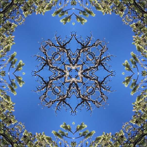 Below is the original photo used to create this image. This was taken at the Grand Canyon during a morning hike along the southern rim on the Greenway Trail. I’m still fascinated by the stark beauty of this dead tree, juxtaposed against the vibrant green of the pine and the watercolor sky. No special lighting or retouching, just a snap from my smart phone.