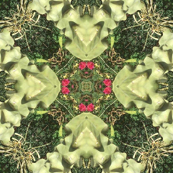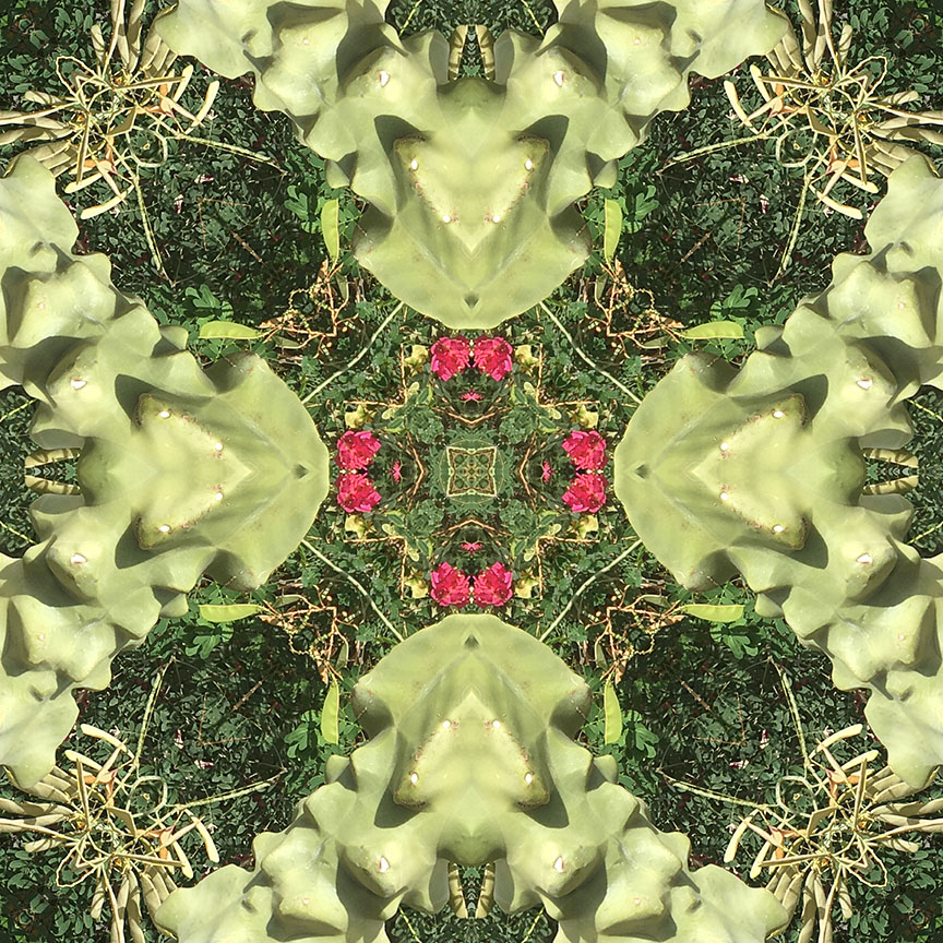 Below is the original photo used to create this image. This gathering of saguaro and funky gourd-like cacti were part of the landscaping in front of my Gramma’s house in Mesa, AZ. No special lighting or retouching, just a snap from my smart phone.