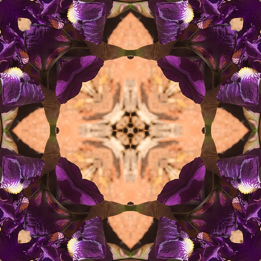 Below is the original photo used to create this image. This was taken at a scenic view and hiking trail outside of Sedona, AZ during a recent vacation. I was surprised and delighted to find this patch of royal-purple irises. No special lighting or retouching, just a snap from my smart phone.
