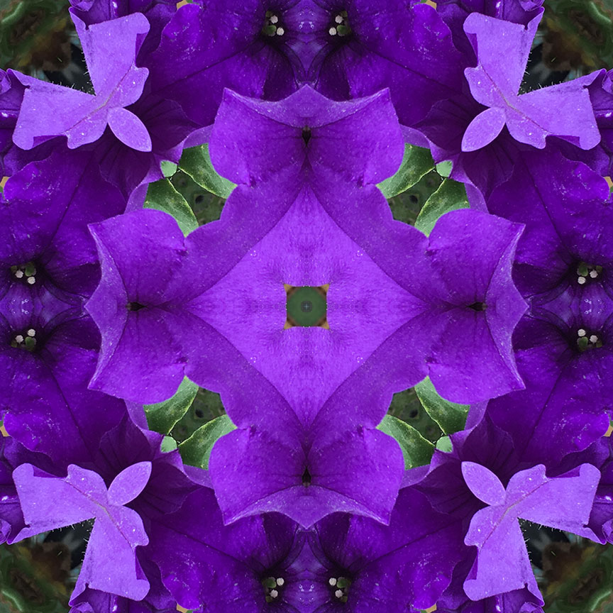 Below is the original photo used to create this image. While taking an afternoon walk around Floyd, VA in the rain. Hanging baskets with a beautiful variety of flowers seemed to be outside every shop. I couldn’t resist these deep violet and vivid pink flowers. No special lighting or retouching, just a snap from my smart phone