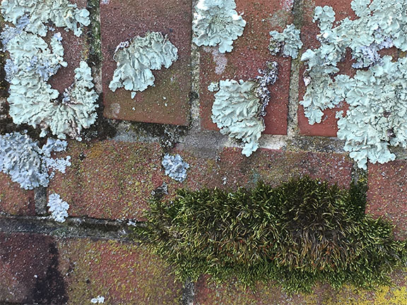 Below is the original photo used to create this image. Found a great moss and lichen bespeckled brick wall on an afternoon walk near Forest Hill Park, in Richmond, VA. No special lighting or retouching, just a snap from my smart phone.