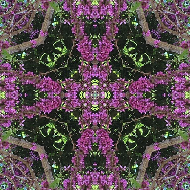 Below is the original photo used to create this image. I found these bright redbuds when I took a lunchtime walk around the capital grounds in Richmond, VA. These lined the wall of the Governor’s Mansion. No special lighting or retouching, just a snap from my smart phone.