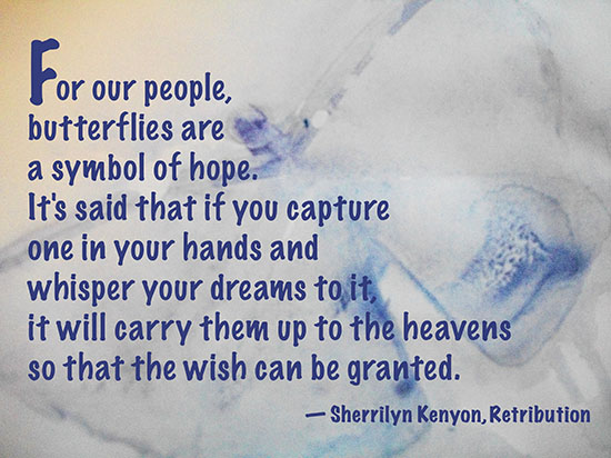 For our people, butterflies are a symbol of hope. It’s said that if you capture one in your hands and whisper your dreams to it, it will carry them up to the heavens so that the wish can be granted.