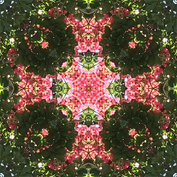 Below is the original photo used to create this image. Caught these glorious crepe myrtles backlit by bright morning sunshine heading out to work. No special lighting or retouching, just a snap from my smart phone.