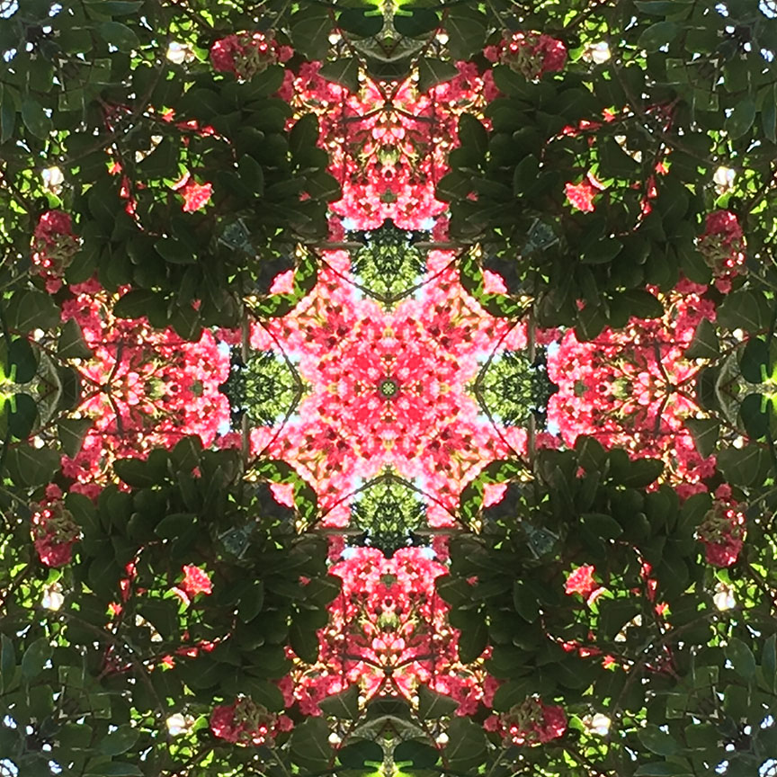 Below is the original photo used to create this image. Caught these glorious crepe myrtles backlit by bright morning sunshine heading out to work. No special lighting or retouching, just a snap from my smart phone.