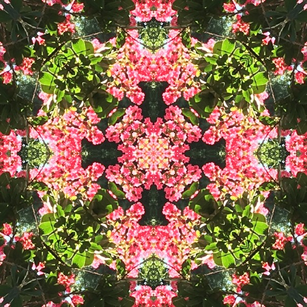 Below is the original photo used to create this image. Caught these glorious crepe myrtles backlit by bright morning sunshine heading out to work. No special lighting or retouching, just a snap from my smart phone.