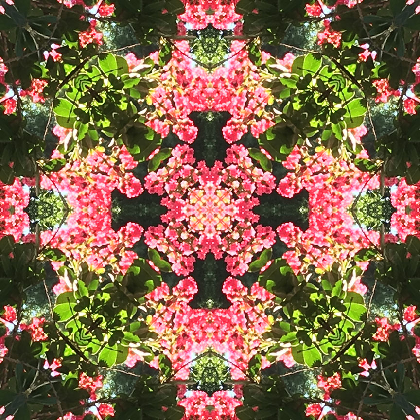 Below is the original photo used to create this image. Caught these glorious crepe myrtles backlit by bright morning sunshine heading out to work. No special lighting or retouching, just a snap from my smart phone.