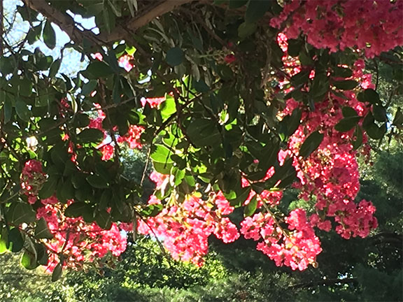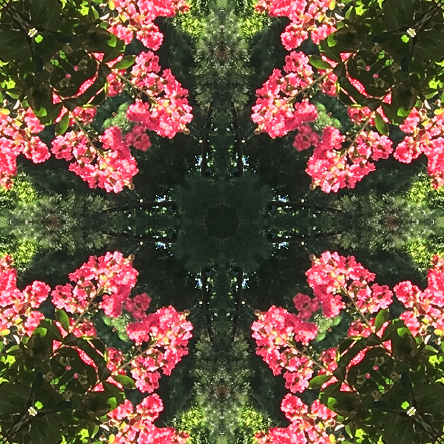 Below is the original photo used to create this image. Caught these glorious crepe myrtles backlit by bright morning sunshine heading out to work. No special lighting or retouching, just a snap from my smart phone.