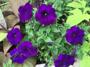 Below is the original photo used to create this image. Taken on.a summer afternoon, while on an afternoon walk around Floyd, VA in the rain. Hanging baskets with a beautiful variety of flowers seemed to be outside every shop. I couldn’t resist these purple petunias. No special lighting or retouching, just a snap from my smart phone.