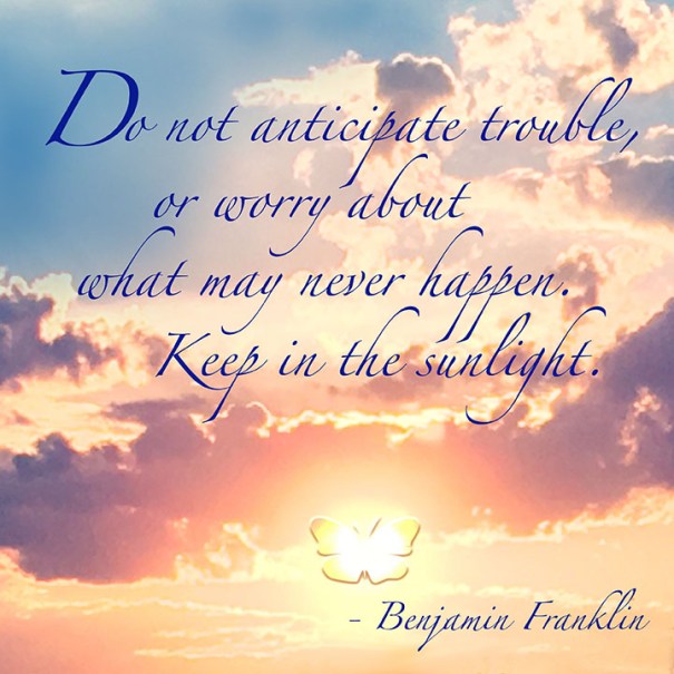 Do not anticipate trouble, or worry about what may never happen. Keep in the sunlight.