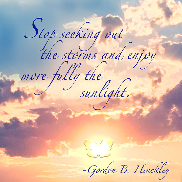 Stop seeking out the storms and enjoy more fully the sunlight.
