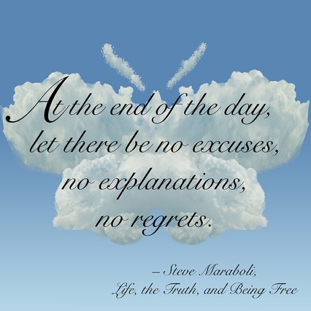 At the end of the day, let there be no excuses, no explanations, no regrets.