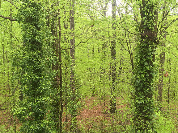 Below is the original photo used to create this image. This is a view out my living room window. The diffuse light on this fresh spring foliage made the room glow and it caught my eye. No special lighting or retouching, just a snap from my smart phone.