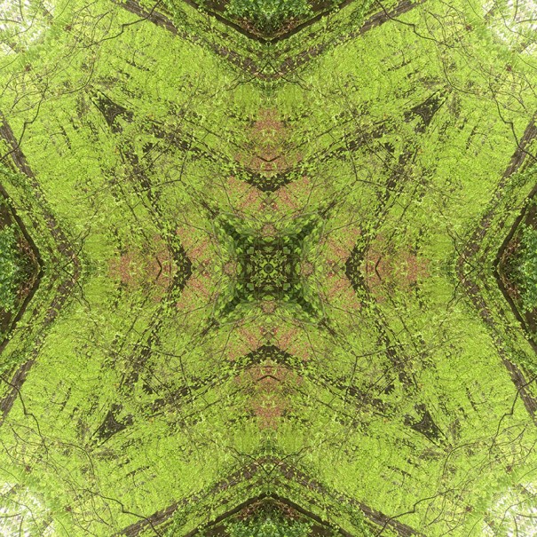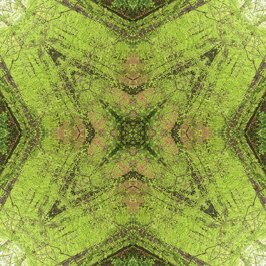 Below is the original photo used to create this image. This is a view out my living room window. The diffuse light on this fresh spring foliage made the room glow and it caught my eye. No special lighting or retouching, just a snap from my smart phone.