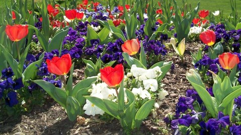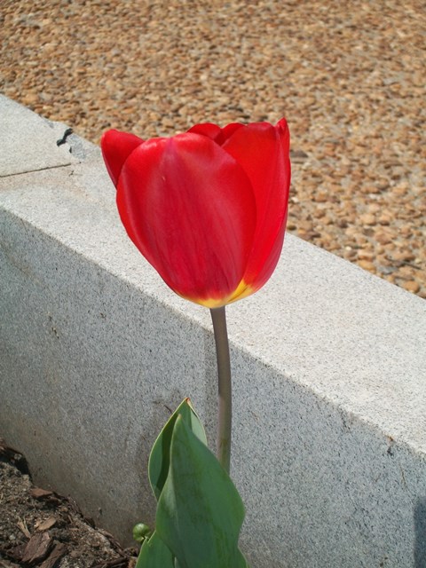 Our state capital is decked out in red, white and blue landscaping. So very bright and cheerful. I was happy to get up close and personal with the red tulips and even happier to find the surprise of a bright yellow “pop” in their center.