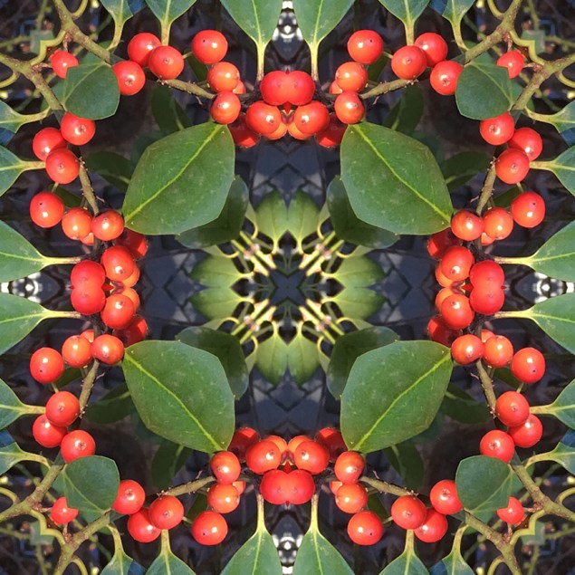 Below is the original photo used to create this image. It’s a bush from the front of my house that has its winter berries going on. Taken on an bright morning with no special lighting or retouching, just a snap from my smart phone.