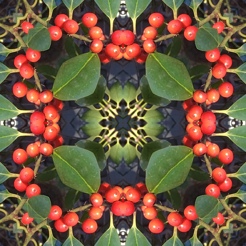 Below is the original photo used to create this image. It’s a bush from the front of my house that has its winter berries going on. Taken on an bright morning with no special lighting or retouching, just a snap from my smart phone.