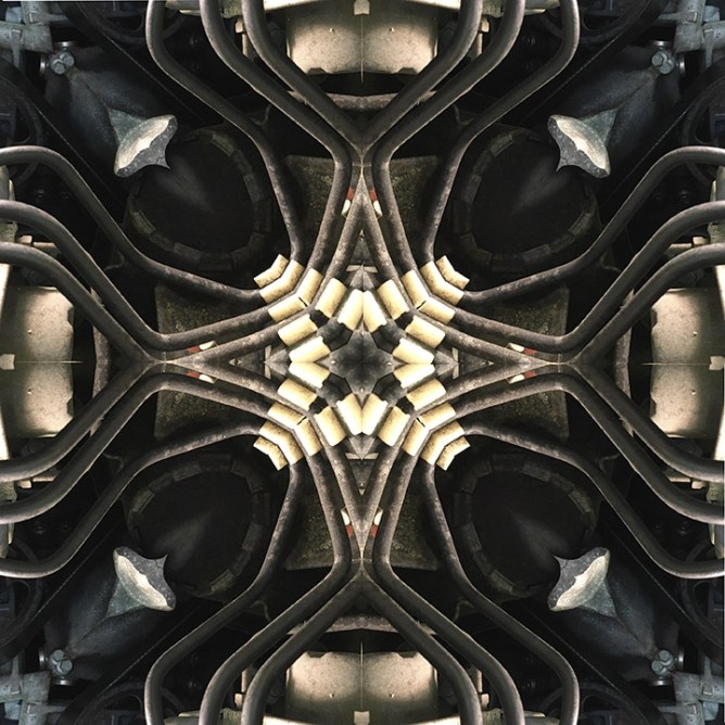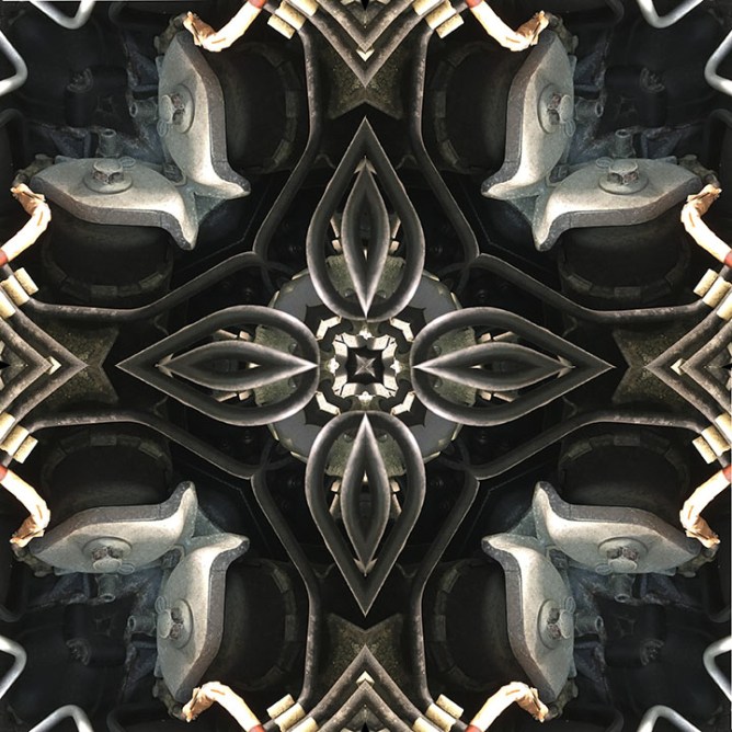 Yes… my very first digital kaleidoscope! Still so very exciting. especially with the “happy accident” of the butterfly shapes emerging in the corners. As promised, below is the original photo used to create this image. It’s my car’s engine, no special lighting or retouching, just a snap from my smart phone.