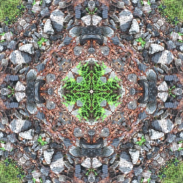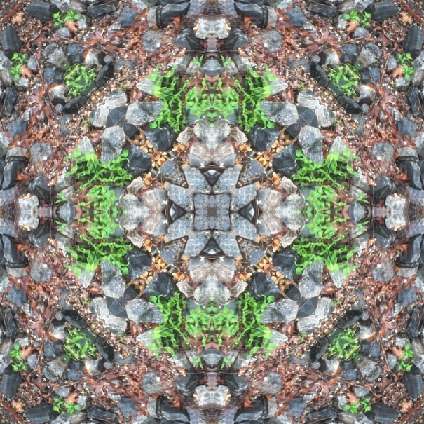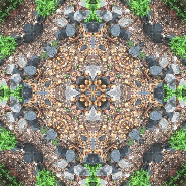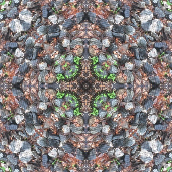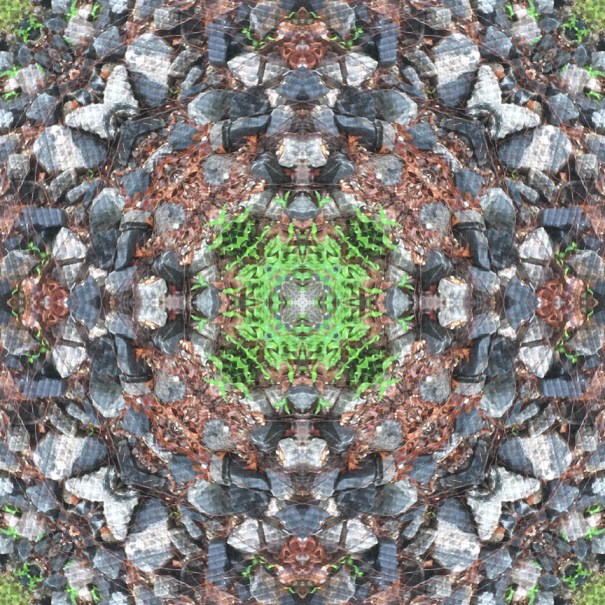 Below is the original photo used to create this image. Now that I’m working from home, this is a part of my new office view. I like how rain brings out the color and richness of stone and my camera picked up some of my window screen adding a geometric texture. No special lighting or retouching, just a snap from my smart phone.