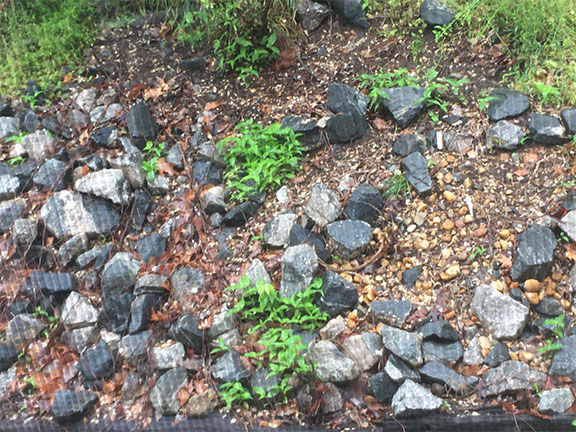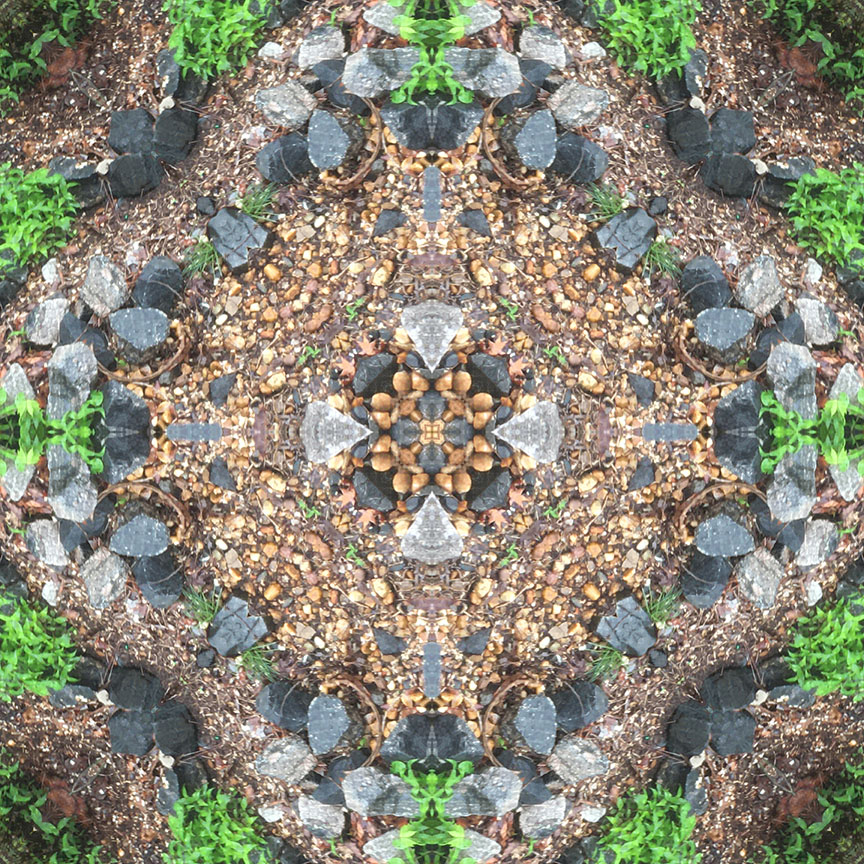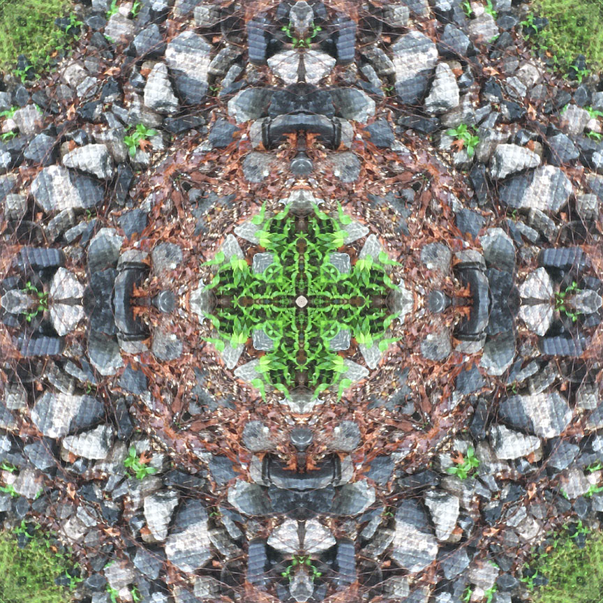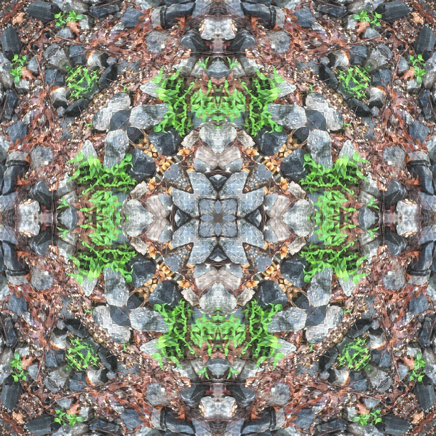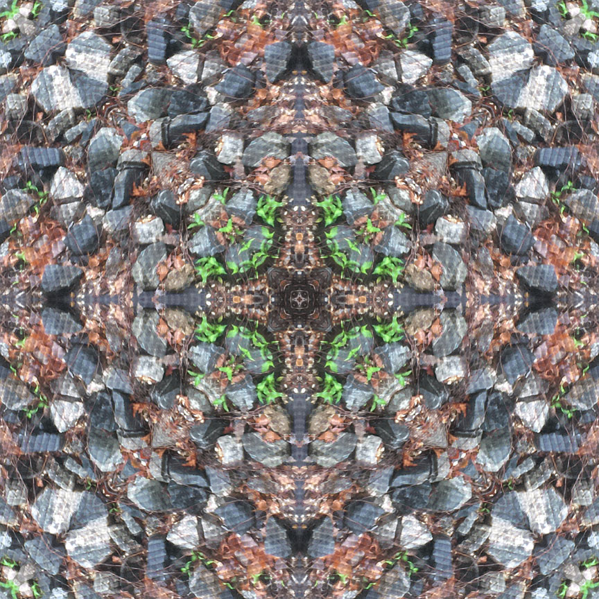 Below is the original photo used to create this image. Now that I’m working from home, this is a part of my new office view. I like how rain brings out the color and richness of stone and my camera picked up some of my window screen adding a geometric texture. No special lighting or retouching, just a snap from my smart phone.