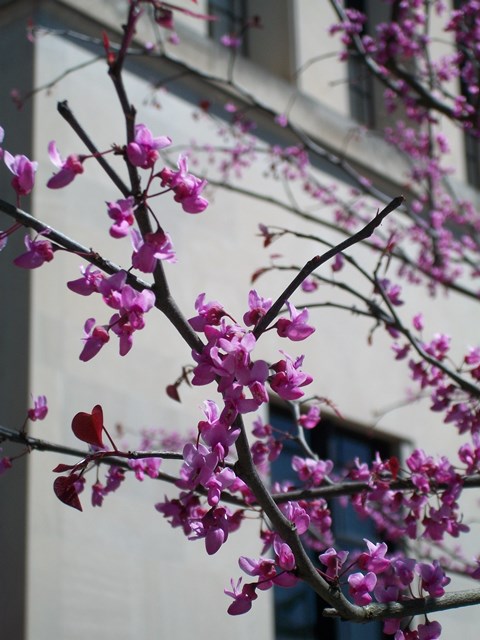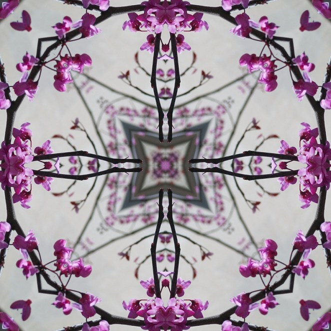 Below is the original photo used to create this image. I found this blooming redbud on a lunchtime walk around the Richmond capital buildings. No special lighting or retouching, just a snap from my Kodak Share digital camera. I like how the background came out a little blurry…