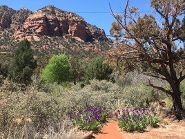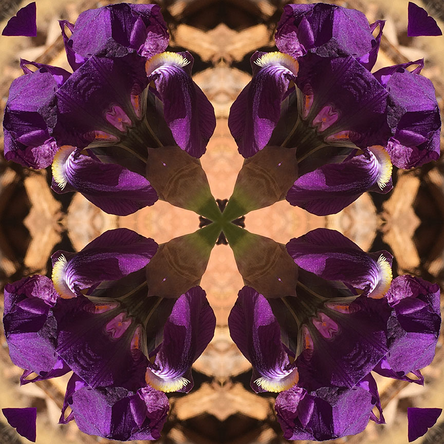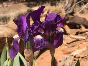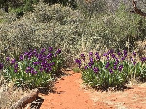 Below is the original photo used to create this image. This was taken at a scenic view and hiking trail outside of Sedona, AZ during a recent vacation. I was surprised and delighted to find this patch of royal-purple irises. No special lighting or retouching, just a snap from my smart phone.
