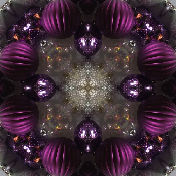 Below is the original photo used to create this image. It’s a gathering of kitschy vintage ornaments from my holiday stash. No special lighting or effects, just a snap from my smartphone.