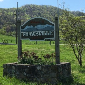 - Shawsville, VA: The weather was absolutely beautiful for our trip last weekend! Nothing says, “spring” like dogwoods and redbuds in bloom. Here are a couple pics of the town sign, sorry no population listed. But I did look it up on Wikipedia… 1,310 at the 2010 census. 🙂
